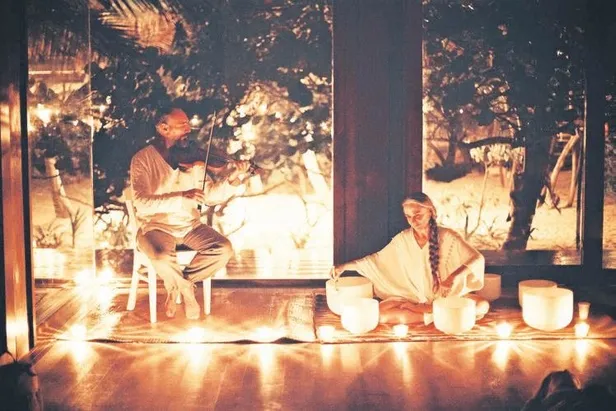 Sosyetik ikoncan, geceliği 720 dolarlık (yaklaşık 4 bin 500 lira) otelde düzenlenen ses terapisine katıldı. Taşpınar, özel eğitmenler eşliğinde loş bir odada gong, Tibet davulu ve keman gibi müzik aletleriyle gerçekleşen terapide moral buldu.